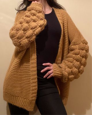Cárdigan de punto grueso con mangas abullonadas. - Tejido en acrílico con pelitos. - Diseño moderno con detalles de punto. - Fabricado en Italia. 🔅Largo 62cm. 🔅Axila 57cm.