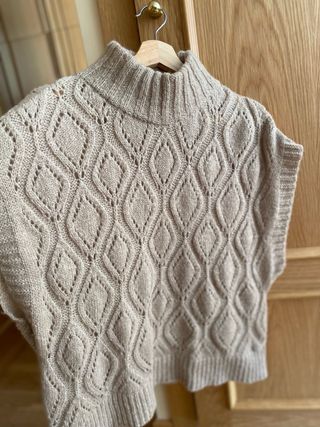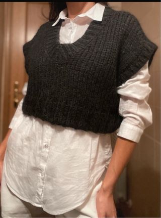 Chaleco de punto grueso de Zara, perfecto para superponer. - Diseño de cuello en V. - Corte cropped. - Manga corta. Largo 40cm. Axila 61cm.