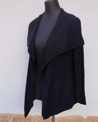 Chaleco largo de punto H&M con un toque de lana. Su diseño es versátil y cómodo. - Tejido de canalé. - Corte holgado. - Aberturas laterales. Largo 80cm. Axila 55cm.