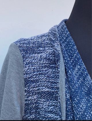 Cardigan jaspeado con un 6%lana, poliester y acrilico. Diseño corto y amplio. Largo 50cm. Axila 58cm.