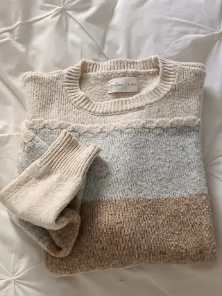 Jersey de punto con diseño de bloques de color. - Cuello redondo. - Manga larga. - Tejido suave y confortable.