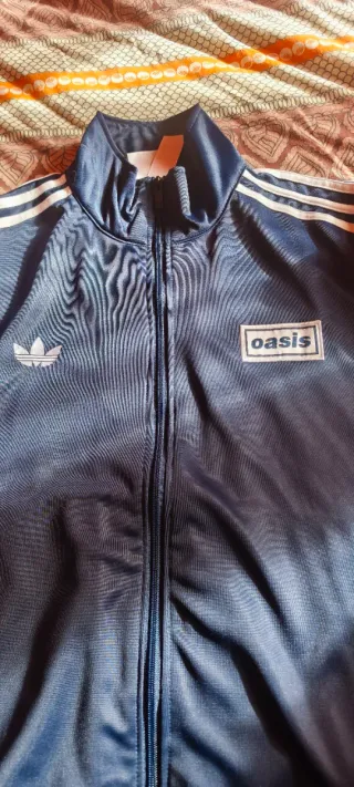 Sudadera deportiva azul de la marca Adidas, con el logo de Oasis Tour 2025. - Diseño con las icónicas tres rayas en las mangas. - Cierre de cremallera. - Bolsillos laterales.