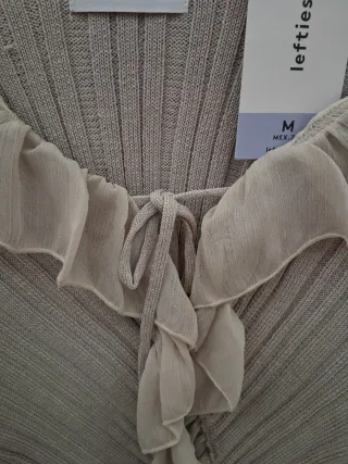 Bolero de punto fino con detalles de volantes. - Diseño de manga larga. - Cierre de lazada en la parte delantera. - Cuello con volantes. - Tejido acanalado.