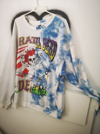 Sudadera con capucha de la marca GRIMEY, modelo DAY DREAMER. - Color azul claro. - Diseño con estampado frontal. - Bolsillo canguro. - Talla M (oversize)