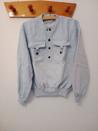Sudadera cómoda para entretiempo con un diseño moderno. - Tejido suave y ligero. - Capucha ajustable con cordones. - Cierre de botones en la parte delantera. - Puños y bajo elásticos. -nunca puesta , solo quitada la etiqueta