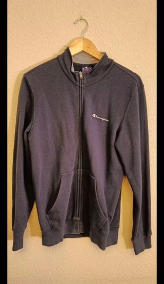 Chaqueta deportiva Champion de color azul marino y talla L. Está en buen estado y es perfecta para cualquier ocasión. Cremallera completa, bolsillos laterales, cuello alto