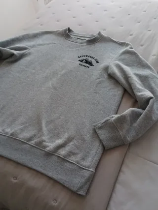 Cómo nueva!! Sudadera gris con estampado. Tejido fino, pero amoroso por dentro. Tella XS holgada, pero también sirve para talla S más ajustada.