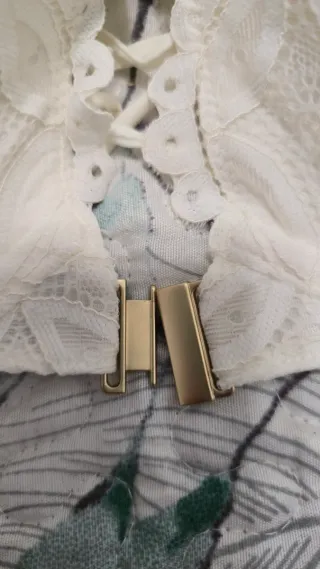 Sujetador de color blanco con detalles en malla. - Tirantes ajustables. - Cierre de corchetes en la espalda. - Aros para mayor soporte. No envio. Entrego en mano en Humanes de Madrid.