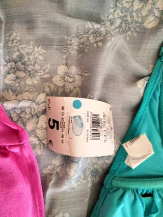 Lote de dos sujetadores de bikini, nuevos y sin estrenar. - Diseño moderno y llamativo. - Tirantes ajustables para un ajuste perfecto. - Detalle de anillas en la parte central.