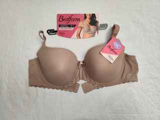 Sujetador de capacidad de la marca BESTFORM modelo 24446, talla 100C, en color beige. Nuevo a estrenar. - Diseño con aros. - Tirantes ajustables anchos de 1,5cm - Cierre de corchetes en la espalda. - Detalle de lazo y charm metálico en el centro. Entra en mi perfil y verás más ropa. 🔴10€ de dto. en la compra de dos o más artículos cuyo total supere 40€. Para recoger en el Parque Goya 2 de Zaragoza, o envío a través de la aplicación.