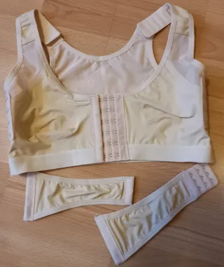 Sujetador de compresión postoperatorio, deportivo, lactancia o uso diario. - Ligero, suave, transpirable y favorecedor. - Cierre frontal con corchetes. - Tirantes ajustables. - Incluye extensiones para ajuste. - Endereza la espalda y brinda soporte no pliegues de grasa antiestéticos. Talla M: Busto 75-79 cm, adecuado for 70/32D, 75/34C, 75/34D, 80/36A, 80/36B. NUEVO A ESTRENAR!!! • Mira mi perfil. Tengo más artículos que te pueden interesar!! GRACIAS!