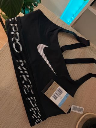 Sujetador deportivo de la marca Nike en talla XS. Es un artículo nuevo. - Color negro. - Diseño deportivo.