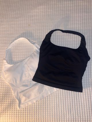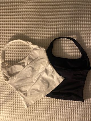 Conjunto de dos tops deportivos. - Diseñados para buena sujeción. - Uno en color blanco y otro en negro.