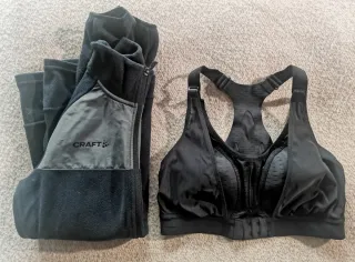 Conjunto deportivo talla XS. incluye una chaqueta de forro polar y un sujetador deportivo. Chaqueta polar CRAFT negra XS (muy cómoda y ligera, ideal para entrenar o entretiempo). Sujetador deportivo Domyos XS. Se venden juntos. Entrega en mano o envío.