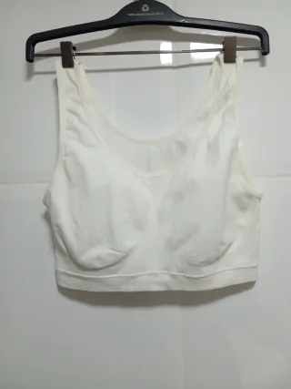 Sujetador deportivo de color blanco. - Diseño sin costuras. - Tejido elástico y suave. - Copas preformadas para mayor soporte.