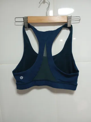Sujetador deportivo de la marca Lululemon en color morado. Diseño con tirantes cruzados en la espalda. - Tejido suave y elástico. - Tiras cruzadas en la espalda. - Banda inferior ancha.