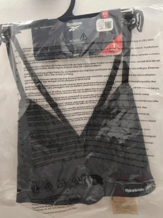 Top deportivo Reebok en color negro, talla XS. Es una prenda sin estrenar. - Diseño con tirantes cruzados en la espalda. - Banda inferior ancha para mayor sujeción.