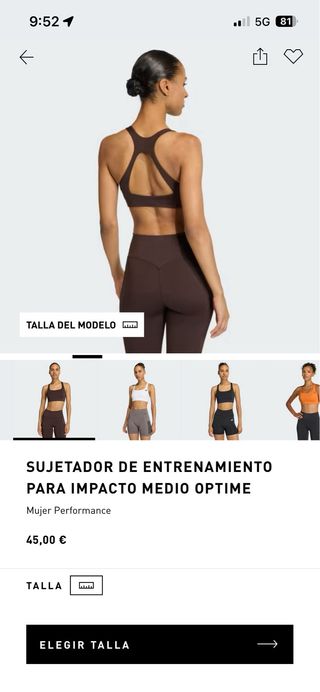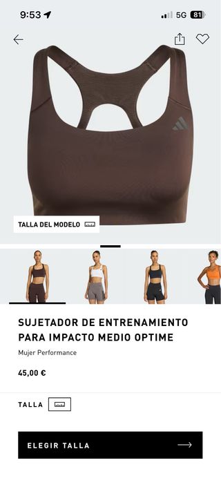 Sujetador deportivo Adidas para entrenamiento de medio impacto. - talla S - sin estrenar, con etiquetas, (me queda pequeño y se me pasó el ticket devolución) - Color marrón.