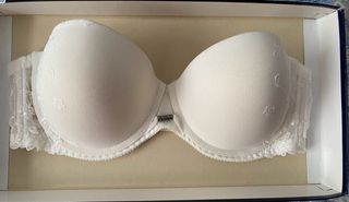 Sujetador sin tirantes, con bonito encaje en blanco, y push up. Lleva también tirantes por si se necesitan. Está sin estrenar. Marca Selmark, modelo Noelia, color marfil. Talla 75D.