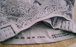 Sujetador con detalle de encaje en color lila. Se abrocha por delante . Se puede quitar y poner el aumento - Composición: 93% Nylon, 7% Elastano. - Talla: XXXL. - Cierre de corchetes.