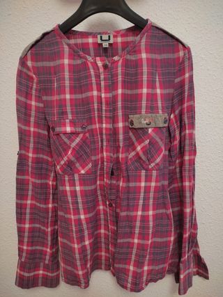 Camisa de chica, de Adolfo Domínguez, talla 38, con trincha para sujetar manga, puños abotonados con 3 botones .