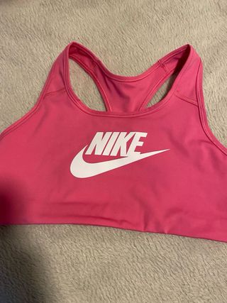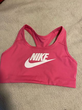 Sujetador deportivo Nike de color rosa. Está en muy buen estado. - Diseño deportivo con tiras cruzadas en la espalda. - Ajuste cómodo y ceñido al cuerpo. - Ideal para hacer ejercicio.