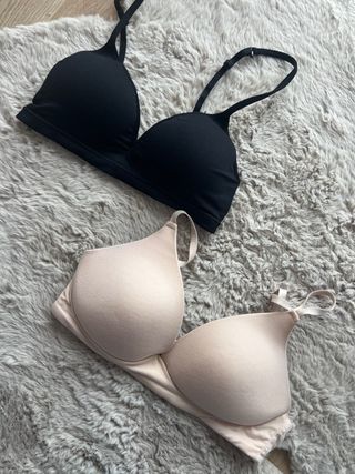 Conjunto de dos sujetadores. - Sujetador negro. - Sujetador beige.