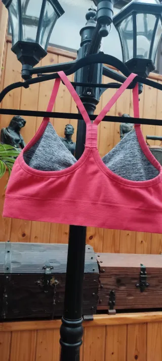 Lote de dos sujetadores deportivos, uno en talla S y otro en talla M. Son cómodos y de tejido elástico.