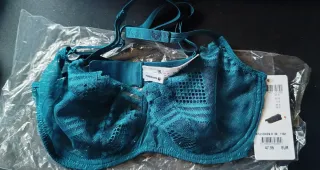 Sujetador de la marca Passionata en un bonito color verde azulado oscuro y talla 95B. Diseño de encaje con doble capa en la copa y aros. Queda precioso.