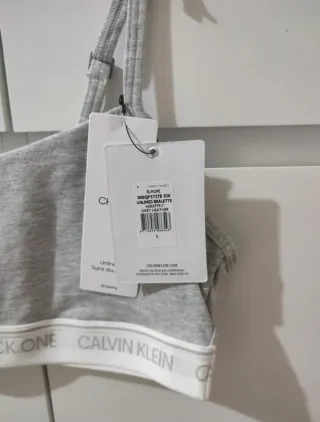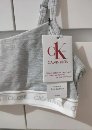 Bralette de Calvin Klein en color gris, talla S. Un básico cómodo y con estilo. - Diseño sin forro. - Banda elástica con logo.