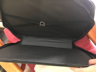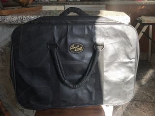 Bolsa/maletín con asas para llevar papeles u objetos que se quieran mantener sin doblar. A priori es un portapapeles, pero puede llegar a ser 4 dedos de ancho (como se aprecia en la última foto) y tiene un accesorio para sujetar lo que se lleve dentro, por lo que también entra ropa. Es de cuero, sin apenas uso. Marca Lino Corelli.