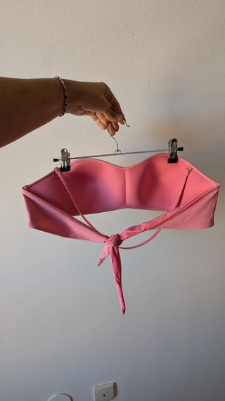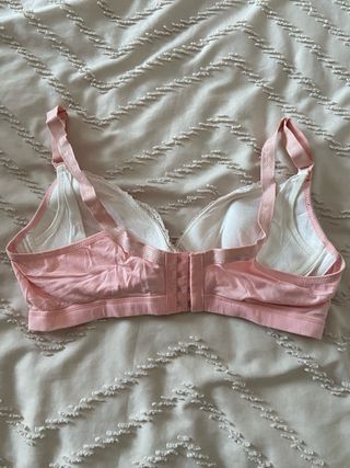 Sujetador rosa de algodón con aros, los tirantes se pueden poner cruzados o al cuello, talla 90c, de Kiabi. Ha tenido 5 usos como máximo, así que está como nuevo, no tiene ninguna marca ni signo de desgaste.