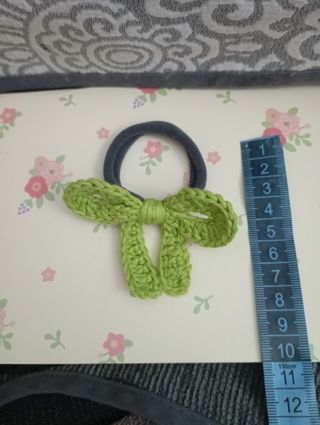 Lazo crochet verde para pelo.