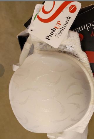 Sujetador push up con un diseño delicado. Sujetador push Up Selmark. Talla 90B. Bonito motivo de dibujo. Nuevo de liquidación de tienda de novias y eventos. Valorado en 60€ . Precio venta 28€ - Copas con relleno para realzar. - Detalle de encaje en la parte superior de las copas. - Tirantes ajustables.