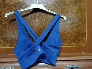 Sujetador deportivo de la marca Fabletics, en color azul y sin estrenar. - Diseño cruzado en la parte delantera. - Tejido suave y elástico.