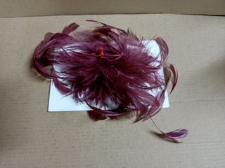 Adorno de plumas en tonos burdeos y rojos, ideal para complementar peinados. - Diseño con múltiples plumas. - Base con clip para sujetar fácilmente.