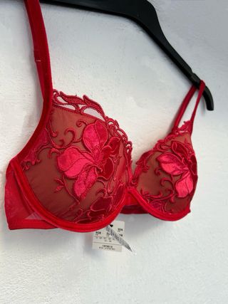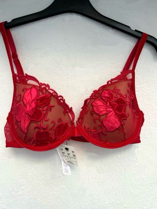 Sujetador sin estrenar. Es Push up y junta el pecho. Ideal para llevar la espalda descubierta con vestido o camisetas. Equivale a una 90C más o menos. Sea adapta al pecho que tengas