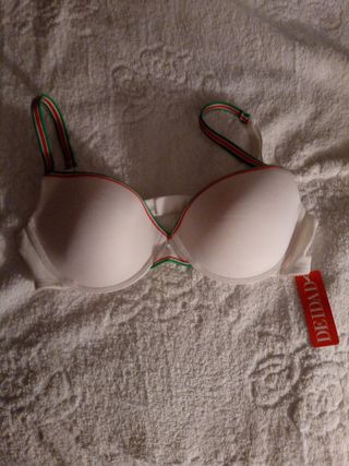 Nunca se ha usado. Tiene relleno. Talla EU 75B, que equivale a una ES 90B. Palabras clave: borrego, borreguillo, borreguito, pelo, peluche, teddy, suave, coralina, polar, nieve, frío, calor, cálido, térmico, invierno, verano, jeans, denim, mezclilla, vaquero, sexy, sujetador, bustier, corse, corset, bufanda, guantes, gorro, camiseta, camisa, blusa, top, sudadera, jersey, cardigan, chaleco, abrigo, chaqueta, cazadora, pantalon, pantalones, shorts, falda, vestido, calcetines, medias, bragas, braguitas, tanga, botas, botines, zapatos, zapatillas, bolso, mochila, cartera, monedero
