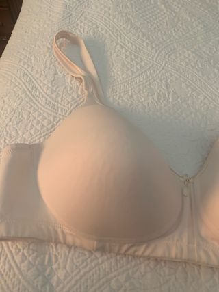 Sujetador talla 105C en color beige. Es un sujetador cómodo y de aspecto impecable. - Diseño de copa completa. - Cierre frontal con cremallera. - Tirantes ajustables., la marca no es esa pero no recuerdo como era es una marca francesa muy bueno es un sujetador excelente