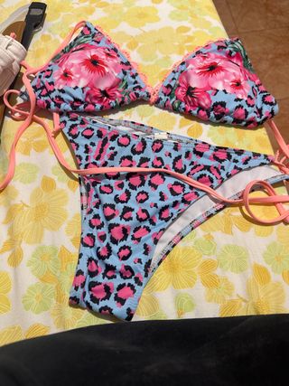 Bikini con estampado floral vibrante. - Diseño de sujetador con copas. - Braguita con detalles de lazada lateral.