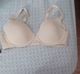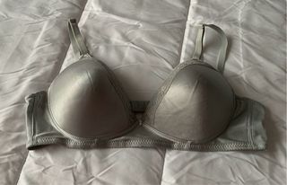 Sujetador de color plateado con detalles de encaje. - Tirantes ajustables. - Cierre de corchetes en la espalda. - Copas con relleno ligero.