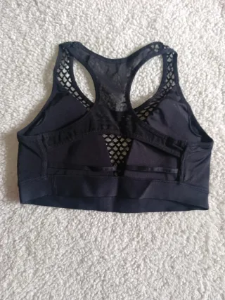 Top deportivo con un diseño moderno y cómodo. - Tejido elástico. - Detalle de rejilla en la parte delantera y en los tirantes. - Banda inferior ancha para mayor sujeción. -Me cayó la etiqueta, nunca le he usado,me queda pequeño.