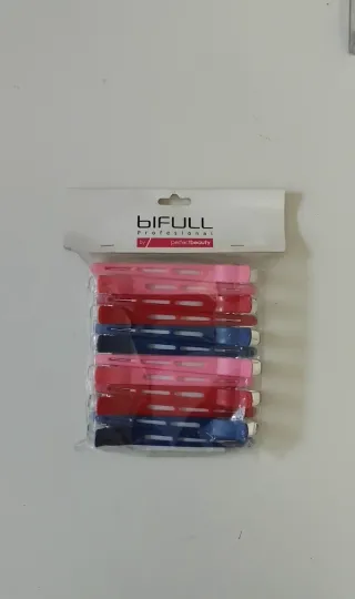 Set de 12 pinzas de pato de la marca Bifull. Son ideales para sujetar el cabello. - Fabricadas en aluminio y plástico. - Diseño de pinza de pato.