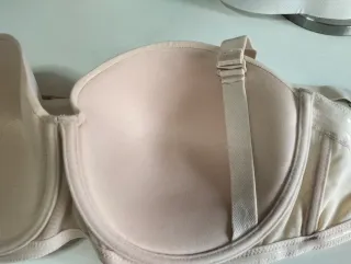 Sujetador sin tirantes en color beige. Su diseño es liso sin costuras para que no se marque con la ropa. Talla XS o 34, medidas aproximadas en la foto Jamás usado Viene también con tirantes para llevarlo como un sujetador normal. No tiene relleno pero las copas están moldeadas.