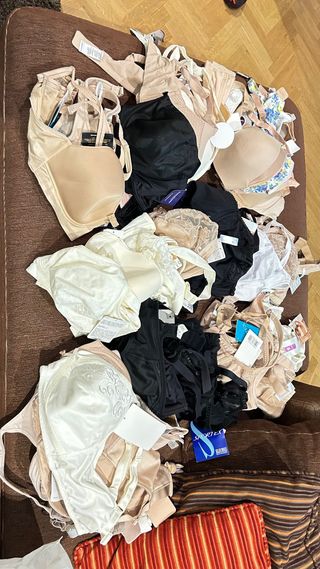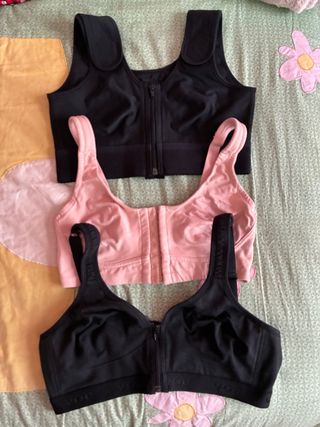 Conjunto de tres sujetadores diseñados para el postoperatorio, mastectomias... el de Anita es una 70A, solo puesto un día, me apretaba mucho.Los otros dos los regalo. El de VOE y el de Women’secret están bastante usados creo que son una 80 A , puedo dar medidas. llevan bolsillos para las prótesis.