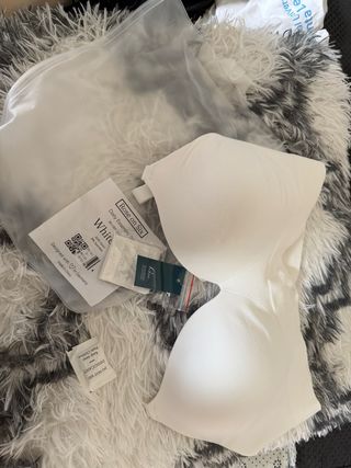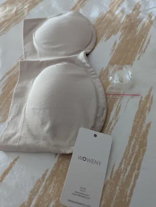 Sujetador sin tirantes de la marca WOWENY. Talla L. - Color beige. - Diseño sin costuras para mayor comodidad. - Ideal para camisetas y vestidos palabra de honor. - Nuevo, con etiqueta. - Incluye tirantes transparentes opcionales para mayor sujeción. - Muy cómodo, no se escurre ni se baja. lo vendo porque uso otro igual en talla M