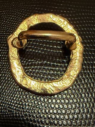Elegante sujetador de pañuelos con un diseño circular. - Acabado metálico dorado.