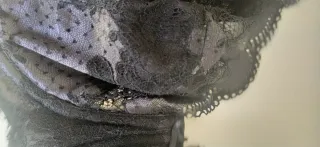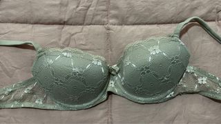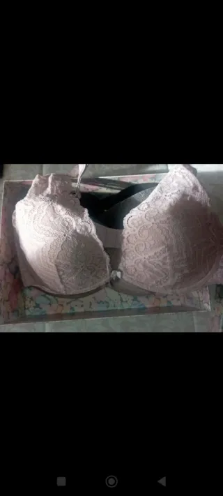 Sujetador con aro y detalles de encaje (la marca no sé cuál es y la talla tampoco, se ha auto completado). - Diseño con copas de encaje floral. - Adorno de lazo en el centro. - Ligero relleno. No uso este tipo de productos porque para mi gusto me parecen incómodos. Es para pecho chiquitito, por ejemplo para alguien que esté entrando en la pre-adolescendia. * Al ser ropa interior, va lavado con agua caliente.