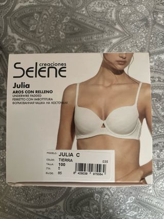 Sujetador Selene modelo Julia con aros y relleno. - Copas preformadas con soporte. - Tirantes ajustables. - Cierre trasero. - Incluye extensor de regalo.