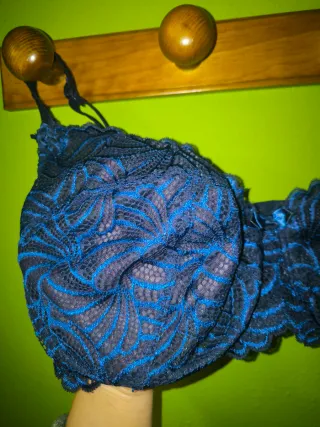 Nuevo, le quite la etiqueta y lo lave, no he llegado a usarlo. Sujetador con un diseño de encaje muy bonito. - Color azul vibrante. - Detalle de encaje con borde festoneado. - Tirantes ajustables.